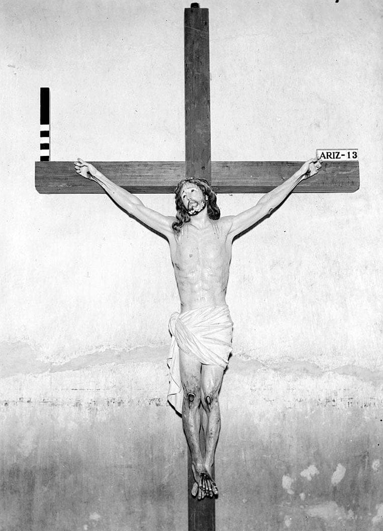 166. Historic American Buildings Survey, Donald W. Dickensheets, Photographer. March 29, 1940. CRUCIFIX (NORTH ELEVATION). - San Xavier del Bac Mission, Mission Road, Tucson, Pima County, AZ