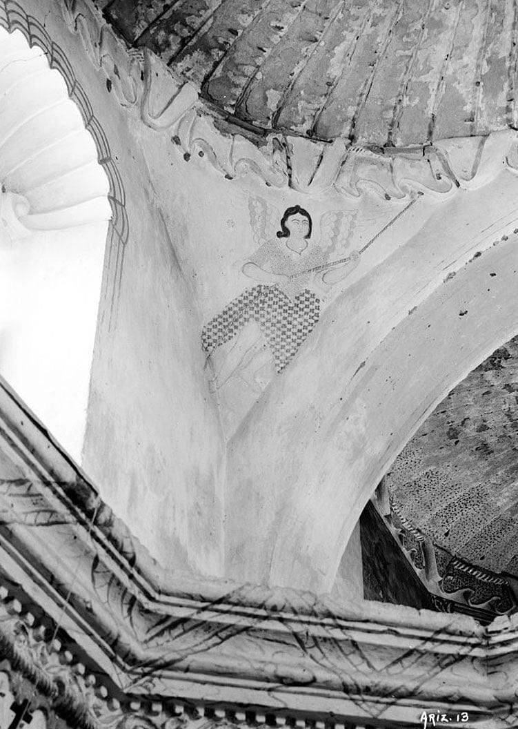 136. Historic American Buildings Survey, Donald W. Dickensheets, Photographer. April 25, 1940. NAVE PENDENTIVE - 1ST. BAY-EAST SIDE (NORTHWEST ELEVATION). - San Xavier del Bac Mission, Mission Road, Tucson, Pima County, AZ