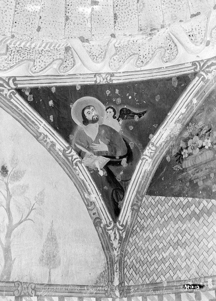 153. Historic American Buildings Survey, Donald W. Dickensheets, Photographer. March 28, 1940. PENDENTIVE MURAL - CHOIR LOFT - ST. MATTHEW. (NORTHWEST ELEVATION). - San Xavier del Bac Mission, Mission Road, Tucson, Pima County, AZ