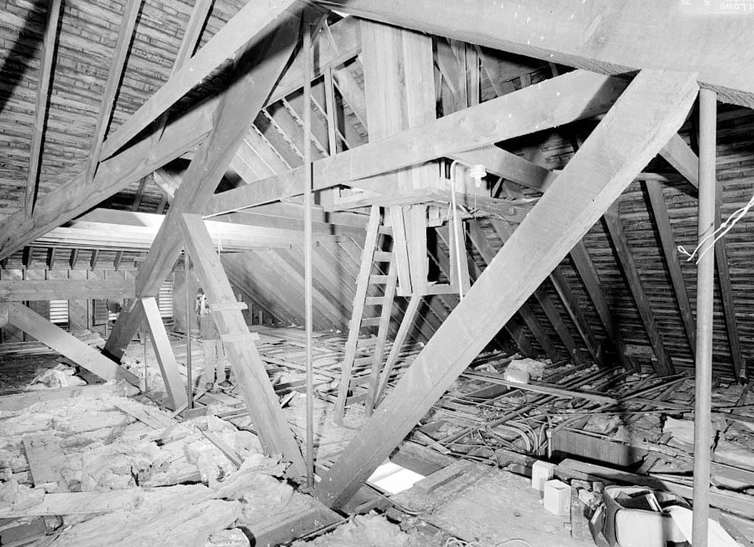 Allen Auditorium attic looking northwest - Sheldon Jackson College, Richard H. Allen Memorial Hall, Lincoln Street, Sitka, Sitka Borough, AK