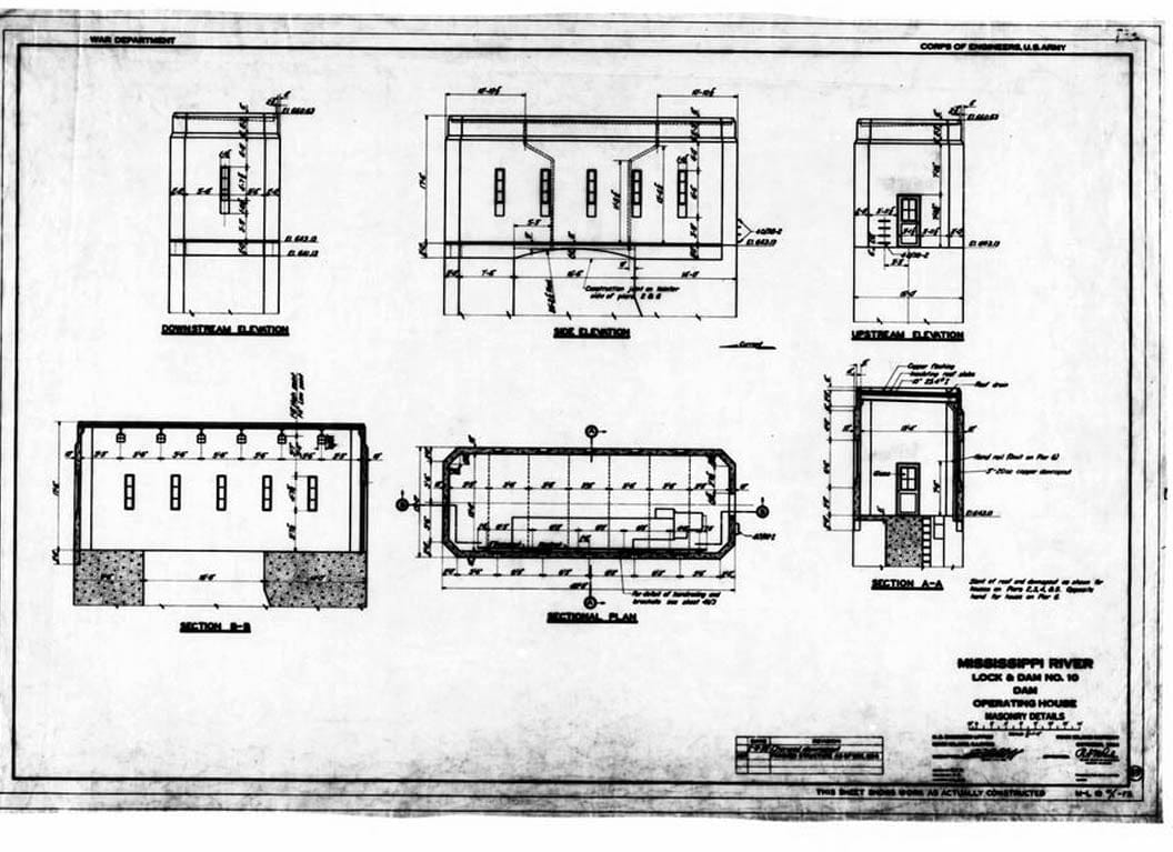 94. DAM - OPERATING HOUSE - MASONRY DETAILS (ML-10-41/1-FS), October 1934. - Upper Mississippi River 9-Foot Channel, Lock & Dam No. 10, Guttenberg, Clayton County, IA
