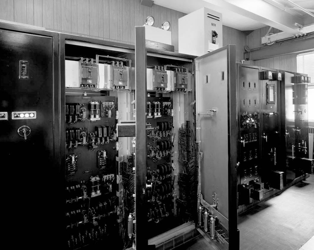 56. INTERIOR VIEW OF CENTRAL CONTROL STATION, WITH A DETAIL VIEW OF THE CENTRAL CONTROL PANEL, LOOKING SOUTHWEST - Upper Mississippi River 9-Foot Channel, Lock & Dam No. 10, Guttenberg, Clayton County, IA