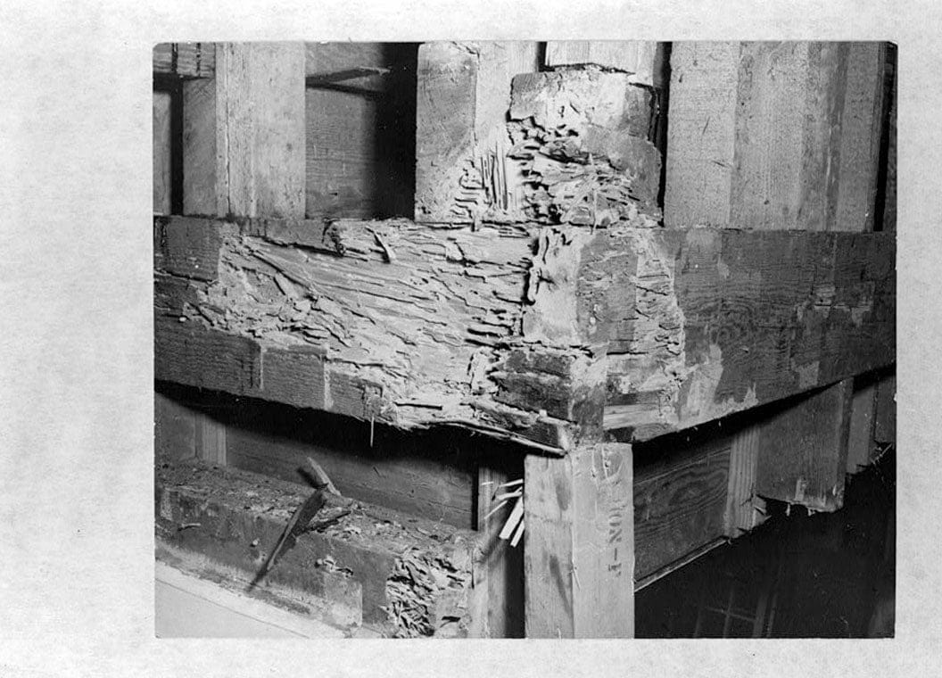23. DETAIL SHOWING TERMITE DAMAGE (no date) - Washington Place, 320 South Beretania Street, Honolulu, Honolulu County, HI