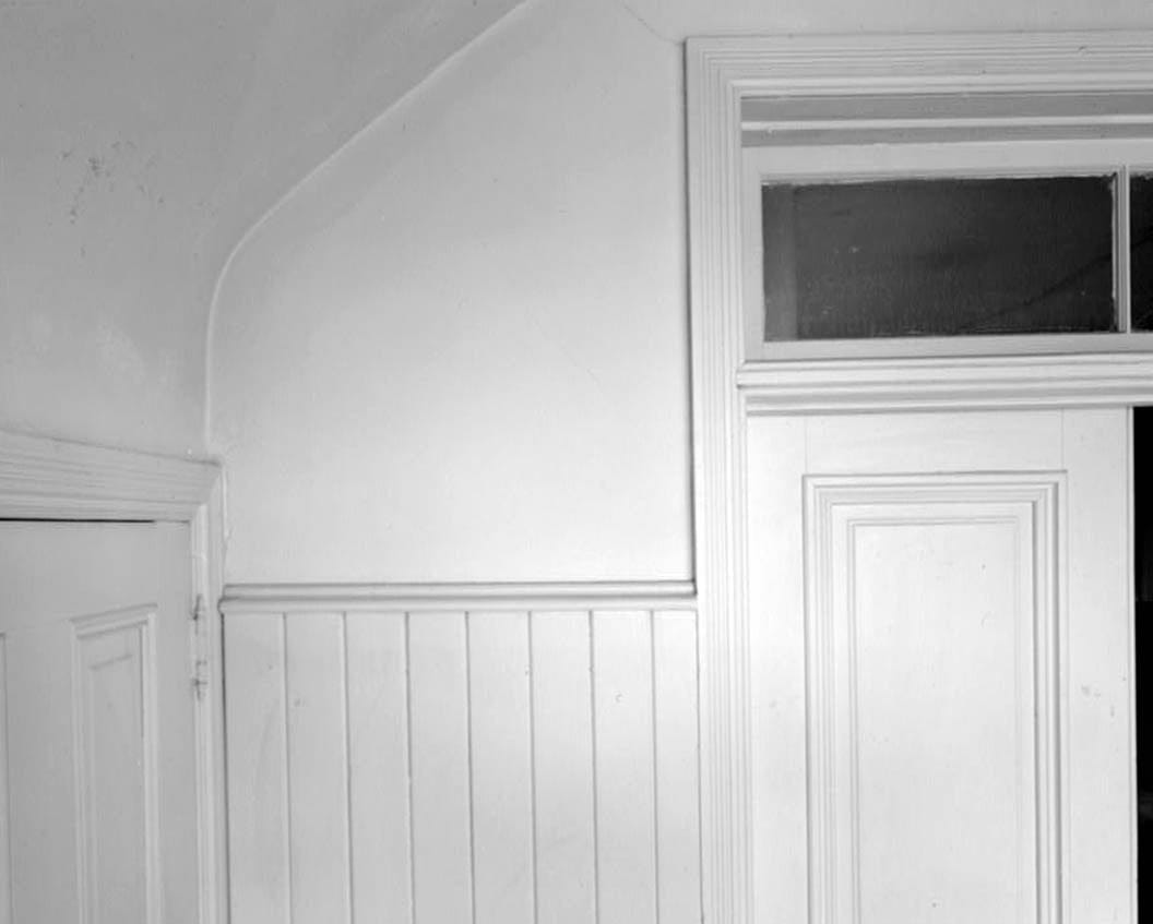 6. FIRST FLOOR VESTIBULE, DETAIL OF MOLDING AND DOOR SURROUND ON WEST WALL LOOKING WEST - West Brandywine Grange, 4008 Concord Pike, Wilmington, New Castle County, DE