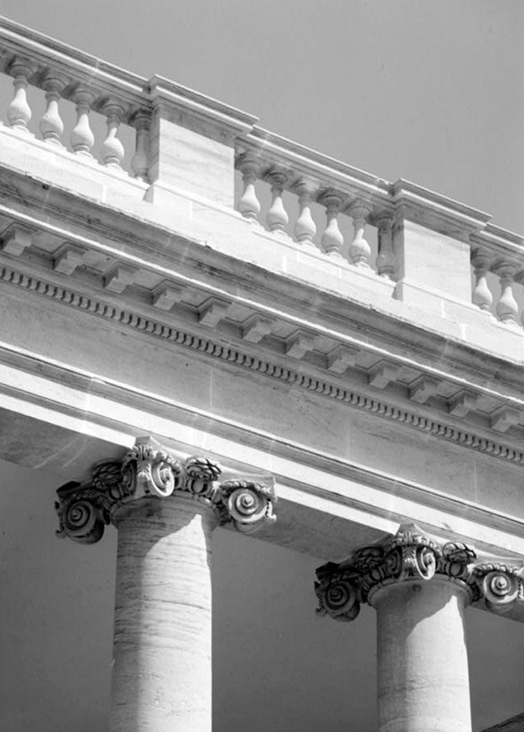45. DETAIL OF BALUSTRADE, CORNICE, AND COLUMN CAPITALS - White House, 1600 Pennsylvania Avenue, Northwest, Washington, District of Columbia, DC