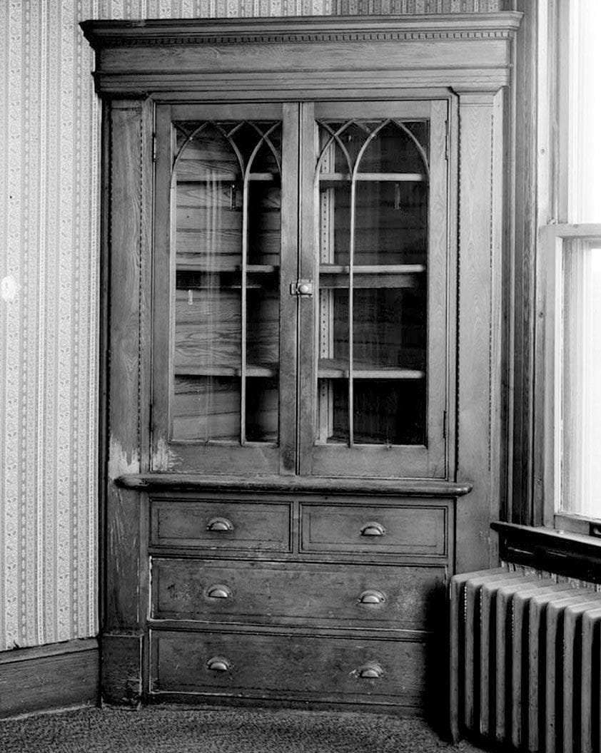 16. INTERIOR: DINING ROOM, DETAIL OF CORNER CABINET, VIEW NORTHEAST - Dr. William M. Curtis House, 23-25 High Street, Bristol, Hartford County, CT