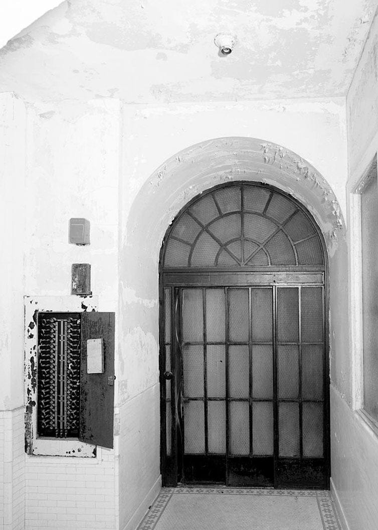 12. ELEVATOR DOORS AND CAB. - Hot Springs National Park, Bathhouse Row, Fordyce Bathhouse: Mechanical & Piping Systems, State Highway 7, 1 mile north of U.S. Highway 70, Hot Springs, Garland County, AR