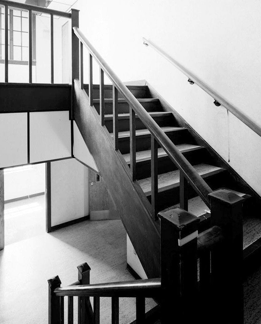 24. VIEW SOUTH; DETAIL OF STAIRS BETWEEN SECOND AND THIRD FLOORS. - Naval Undersea Warfare Center, Bowditch Hall, 600 feet east of Smith Street & 350 feet south of Columbia Cove, West bank of Thames River, New London, New London County, CT
