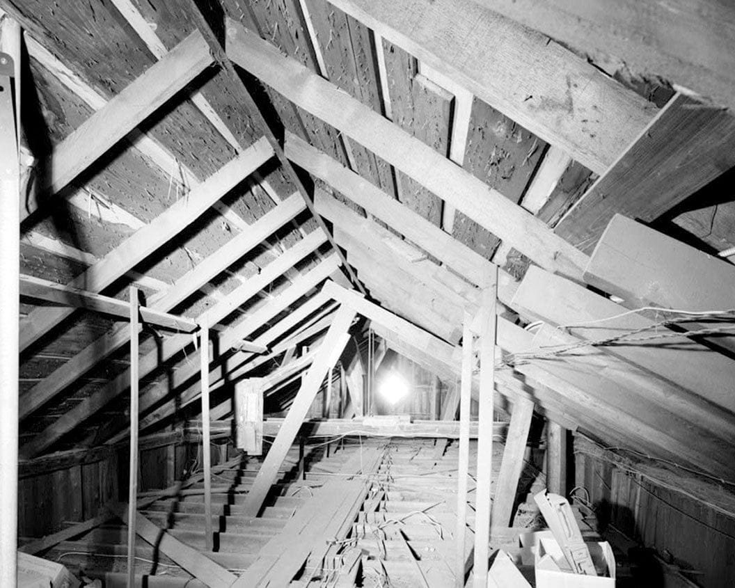 View northeast; attic, showing roof structure - New Canaan Railroad Station, Approximately 200 feet southwest of intersection of Park & Elm Streets & approximately 150 feet north of Pine Street, New Canaan, Fairfield County, CT