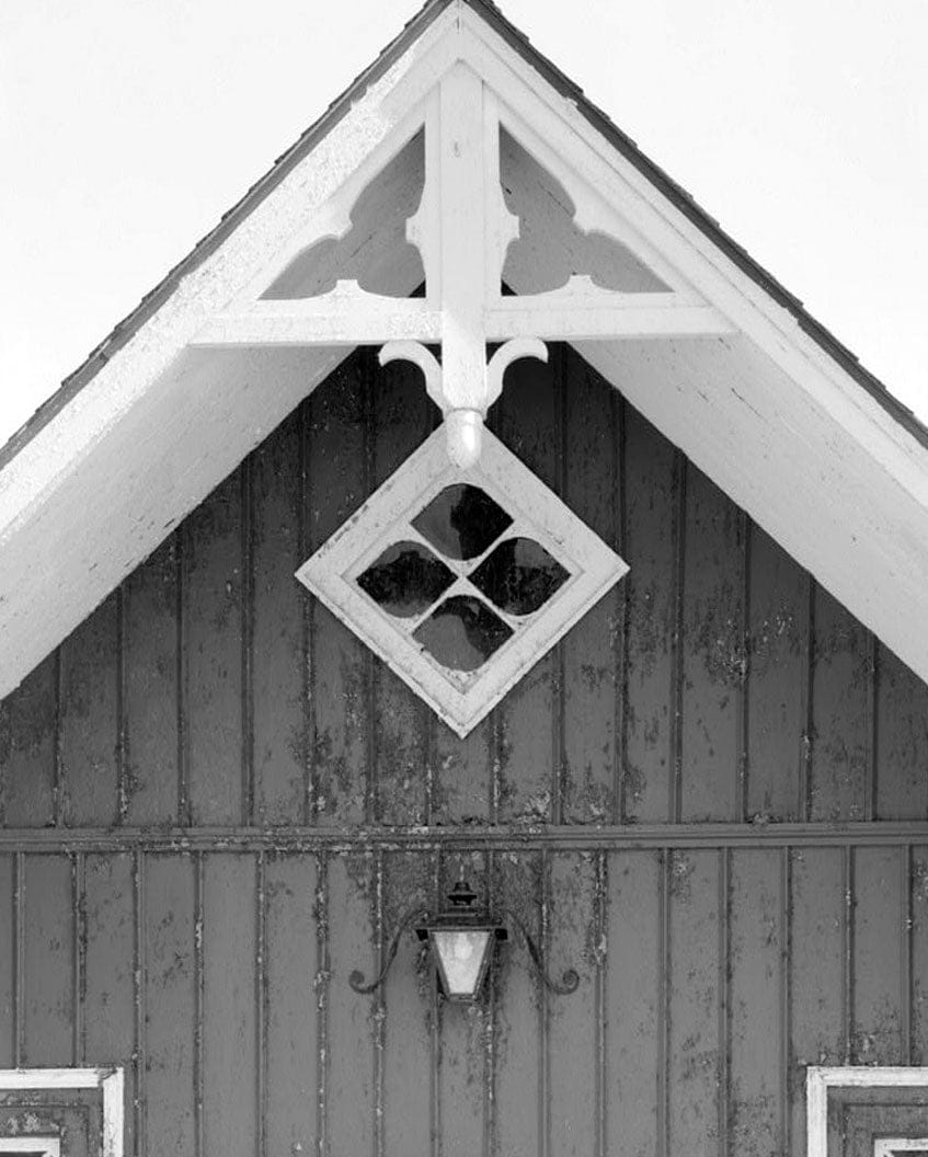 View west; easterly gable end detail - New Canaan Railroad Station, Approximately 200 feet southwest of intersection of Park & Elm Streets & approximately 150 feet north of Pine Street, New Canaan, Fairfield County, CT