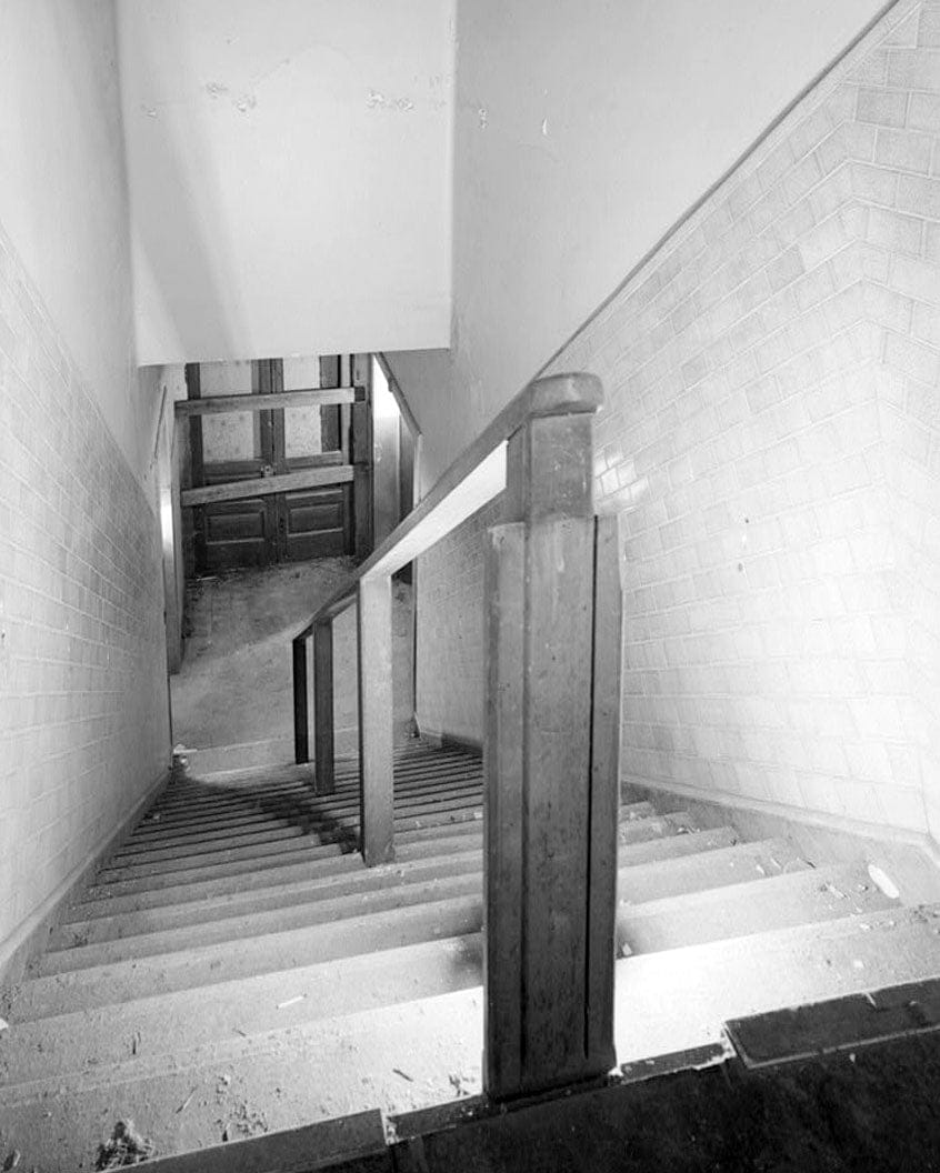 26. BUILDING 1006, STAIRCASE LOOKING DOWN. - Presidio of San Francisco, Letterman General Hospital, Building No. 27, Letterman Hospital Complex, Edie Road, San Francisco, San Francisco County, CA