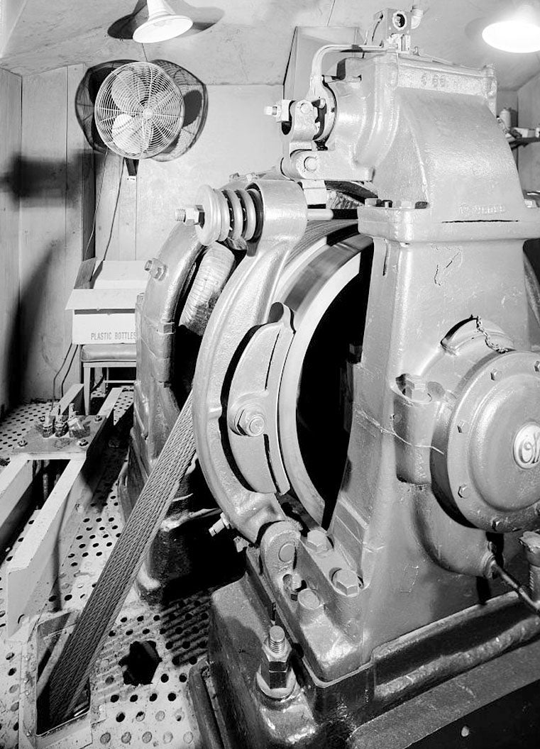 Elevator motor in elevator machine room - Washington Monument, High ground West of Fifteenth Street, Northwest, between Independence & Constitution Avenues, Washington, District of Columbia, DC