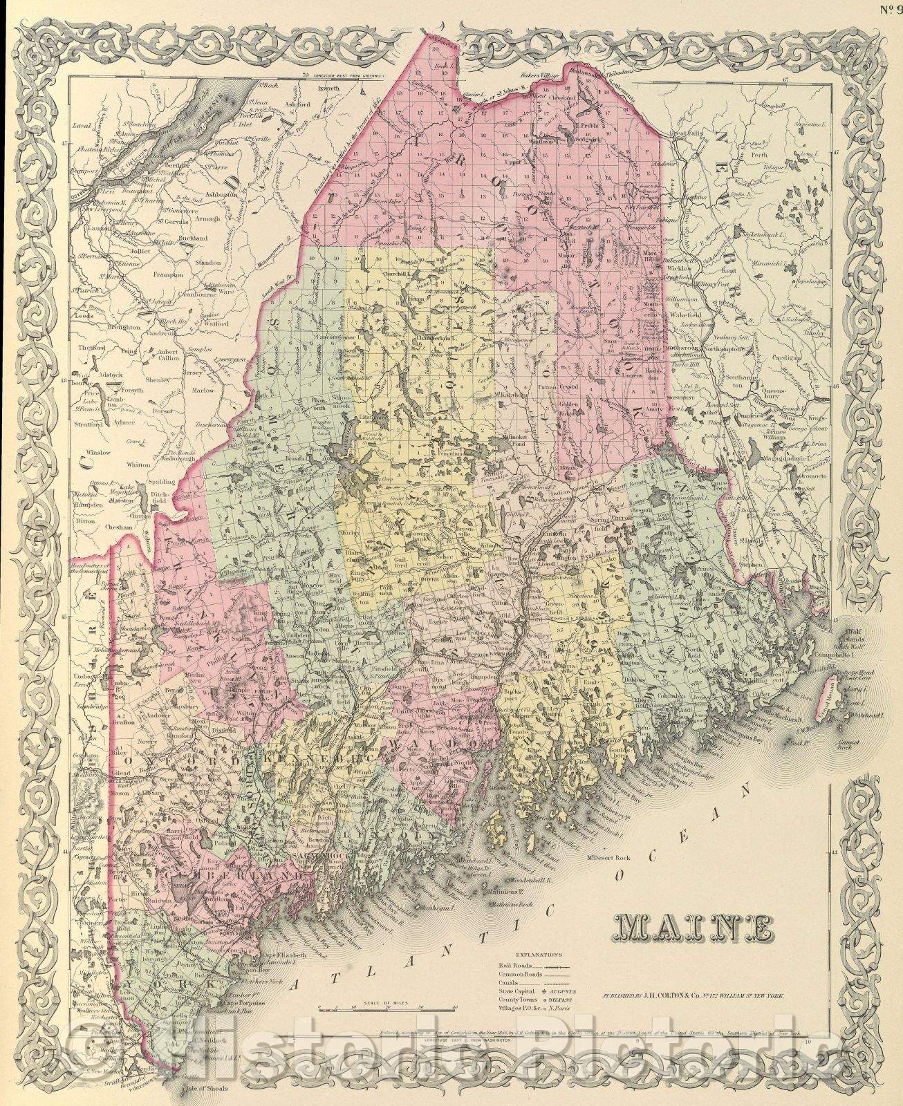 Historic Map : Colton's Atlas of the world : illustrating physical and political geography by George W. Colton accompanied by descriptions geographical, statistical, 1855 , Vintage Wall Art