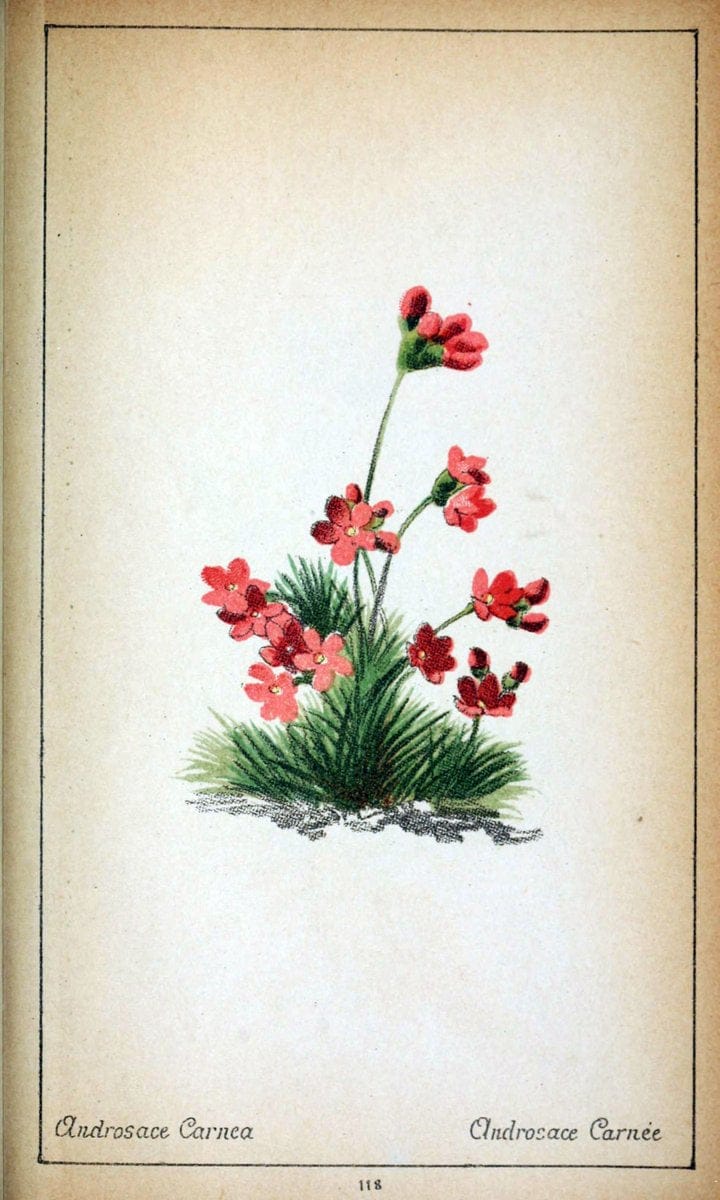 Choix de plantes de l'Europe centrale et particulièrement de la Suisse et de la SavoieGenève,F. Richard,1878.|Europe Central "Pictorial works" Plants "Savoy (France and Italy)" Switzerland "Mertz Library" "The New York Botanical Garden" |taxonomy:binomial=Androsace carnea |