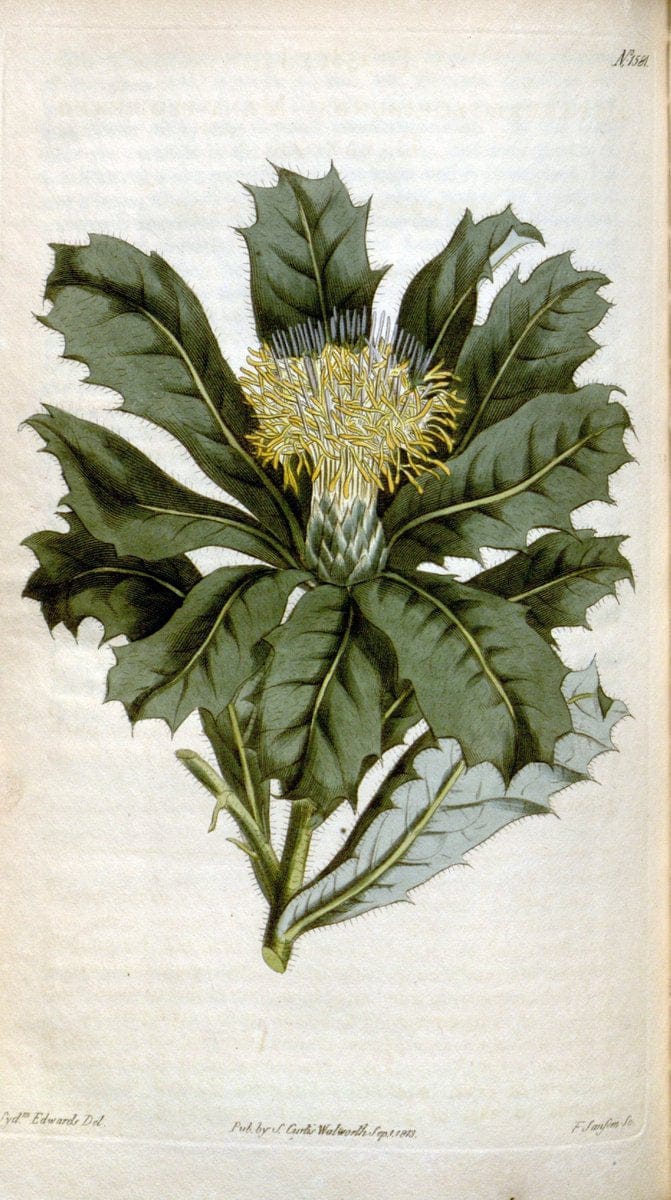 Curtis's botanical magazine. London ; New York [etc.] :Academic Press [etc.].|"Botanical illustration" Botany Periodicals "Pictorial works" "Plants, Ornamental" "Missouri Botanical Garden, Peter H. Raven Library" | geo:country=Australia | taxonomy:binomial=Banksia sessilis | taxonomy:binomial=Dryandra floribunda | taxonomy:binomial=Dryandra sessilis | taxonomy:family=Proteaceae | taxonomy:common=Parrot Bush |