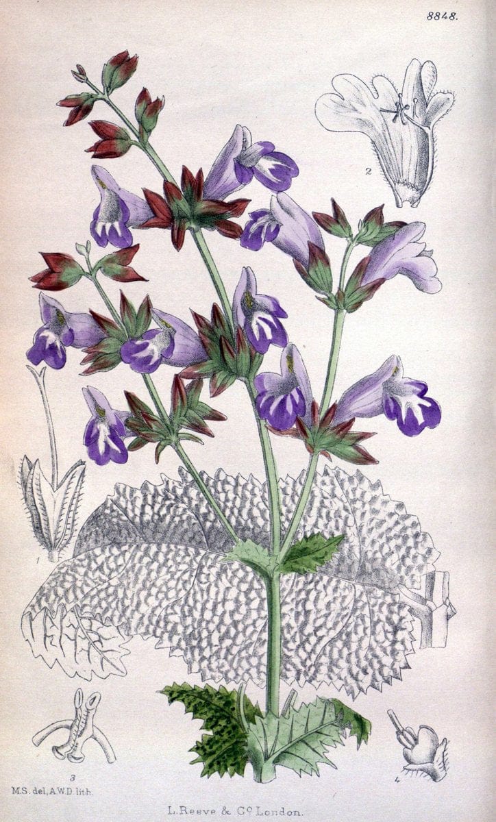 Curtis's botanical magazine. London ; New York [etc.] :Academic Press [etc.].|"Botanical illustration" Botany Periodicals "Pictorial works" "Plants, Ornamental" "Missouri Botanical Garden, Peter H. Raven Library" | | taxonomy:binomial=Salvia brevilabra | taxonomy:family=Lamiaceae geo:country=China