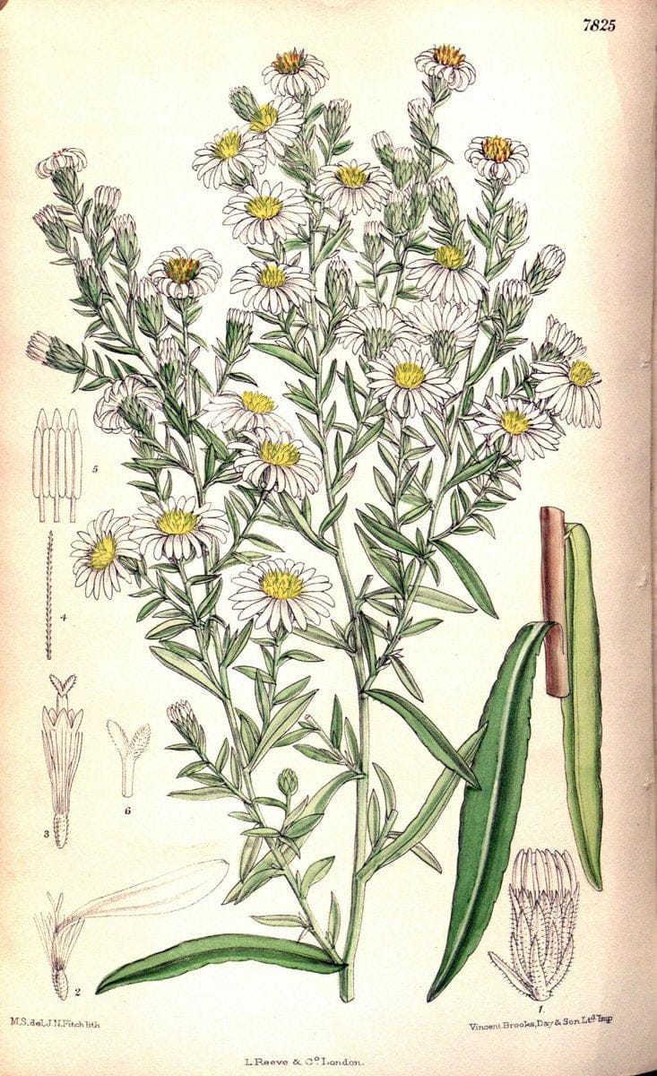 Curtis's botanical magazine. London ;New York [etc.] :Academic Press [etc.].|Botany Periodicals "Pictorial works" "Missouri Botanical Garden, Peter H. Raven Library" |artist:name=Matilda Smith | artist:viaf=48272868 | taxonomy:binomial=Aster tenuifolius | taxonomy:binomial=Symphyotrichum tenuifolium | taxonomy:common=Brace's Aster | geo:country=United States of America | geo:locality=Eastern North America |