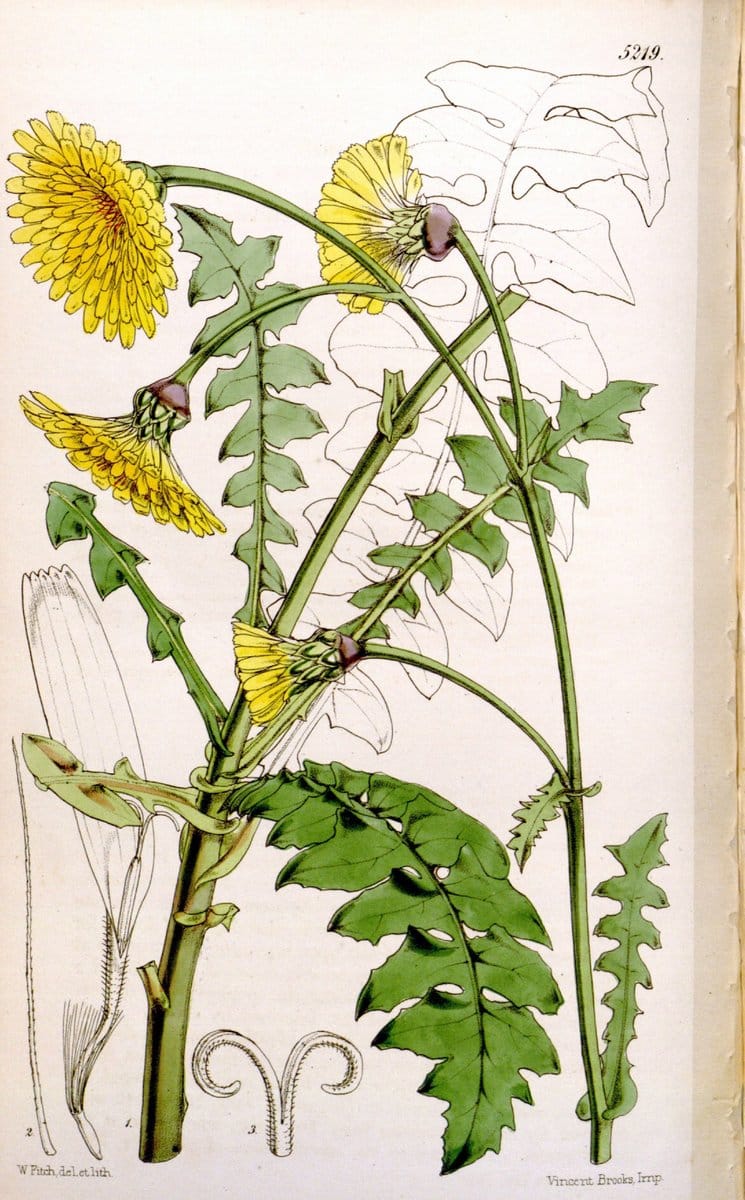 Curtis's botanical magazine. London ;New York [etc.] :Academic Press [etc.].|Botany Periodicals "Pictorial works" "Missouri Botanical Garden, Peter H. Raven Library" |artist:name=Walter Hood Fitch | artist:viaf=12458289 | taxonomy:binomial=Sonchus gummifer |