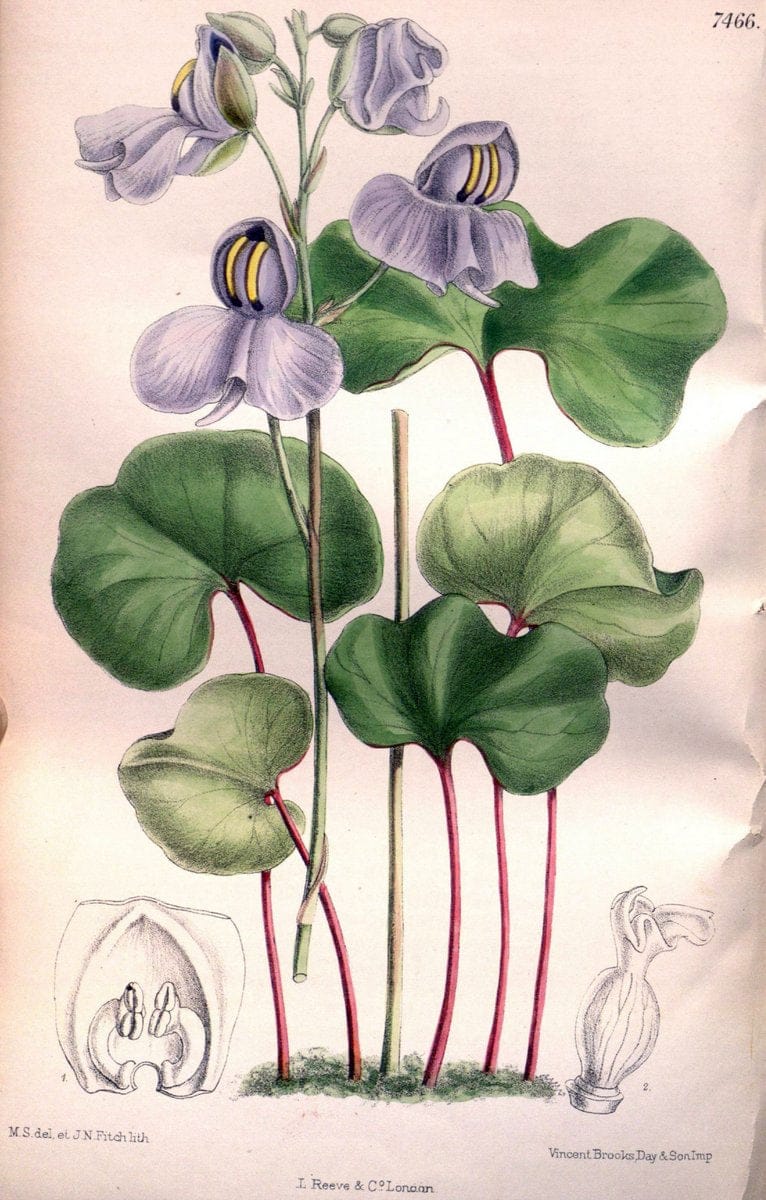 Curtis's botanical magazine. London ; New York [etc.] :Academic Press [etc.].|"Botanical illustration" Botany Periodicals "Pictorial works" "Plants, Ornamental" "Missouri Botanical Garden, Peter H. Raven Library" |artist:name=Matilda Smith | artist:viaf=48272868 | taxonomy:binomial=Utricularia janthina | taxonomy:binomial=Utricularia reniformis | geo:country=Brazil