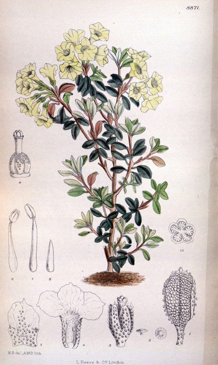 Curtis's botanical magazine. London ; New York [etc.] :Academic Press [etc.].|"Botanical illustration" Botany Periodicals "Pictorial works" "Plants, Ornamental" "Missouri Botanical Garden, Peter H. Raven Library" | | taxonomy:binomial=Rhododendron sargentianum | taxonomy:family=Ericaceae geo:country=China geo:county=†Szechuanâ€