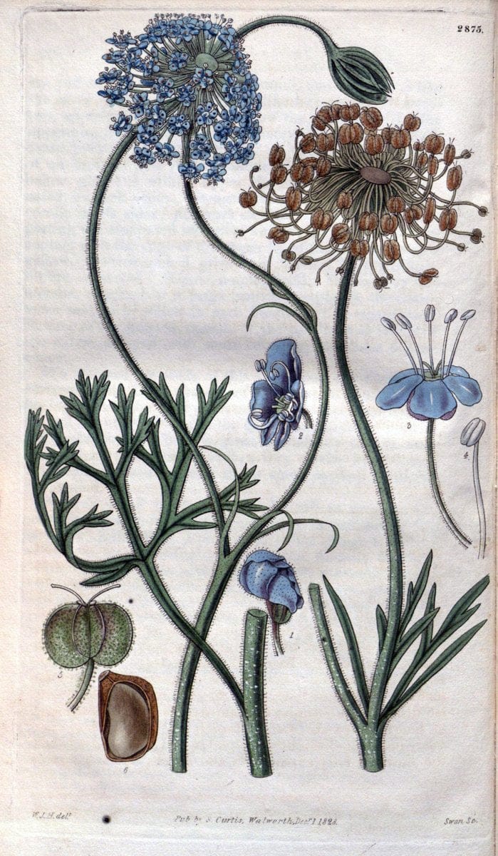 Curtis's botanical magazine. London ; New York [etc.] :Academic Press [etc.].|"Botanical illustration" Botany Periodicals "Pictorial works" "Plants, Ornamental" "Missouri Botanical Garden, Peter H. Raven Library" | geo:country=Australia | taxonomy:binomial=Trachymene coerulea | taxonomy:binomial=Didiscus coeruleus |