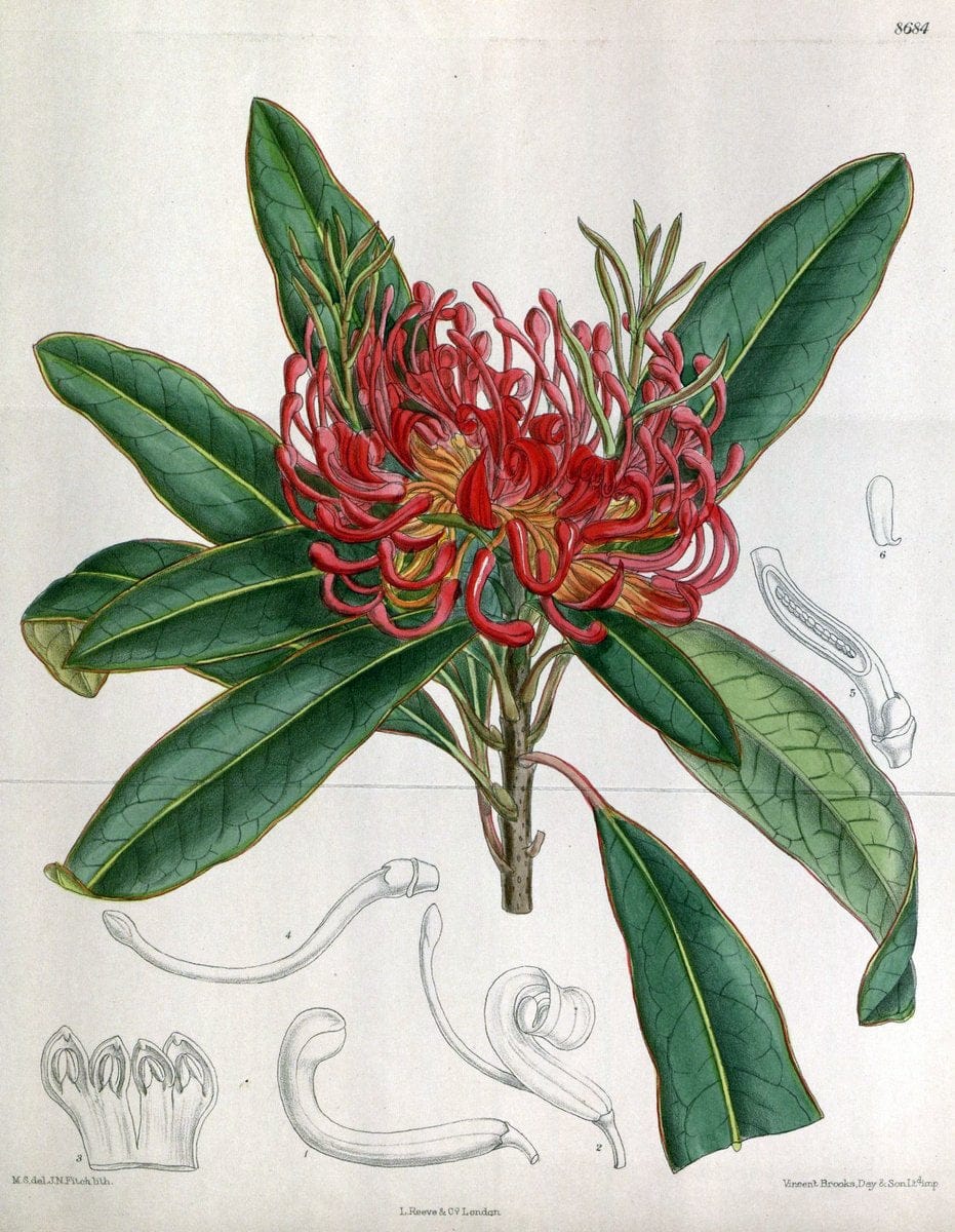 Curtis's botanical magazine. London ; New York [etc.] :Academic Press [etc.].|"Botanical illustration" Botany Periodicals "Pictorial works" "Plants, Ornamental" "Missouri Botanical Garden, Peter H. Raven Library" | Geo:country=Australia | taxonomy:binomial=Telopea oreades | artist:name=Matilda Smith | artist:viaf=48272868
