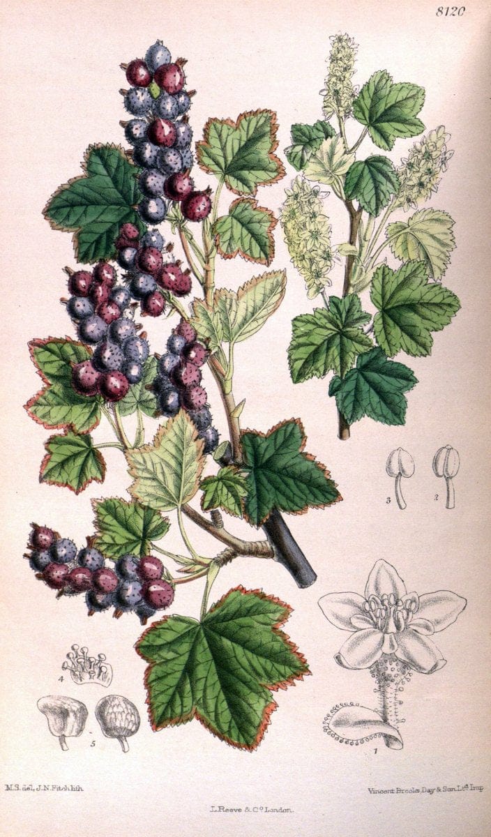 Curtis's botanical magazine. London ;New York [etc.] :Academic Press [etc.].|Botany Periodicals "Pictorial works" "Missouri Botanical Garden, Peter H. Raven Library" |artist:name=Matilda Smith | artist:viaf=48272868 | taxonomy:binomial=Ribes mogollonicum | taxonomy:binomial=Ribes wolfii | geo:country=United States of America | geo:locality=Western United States |