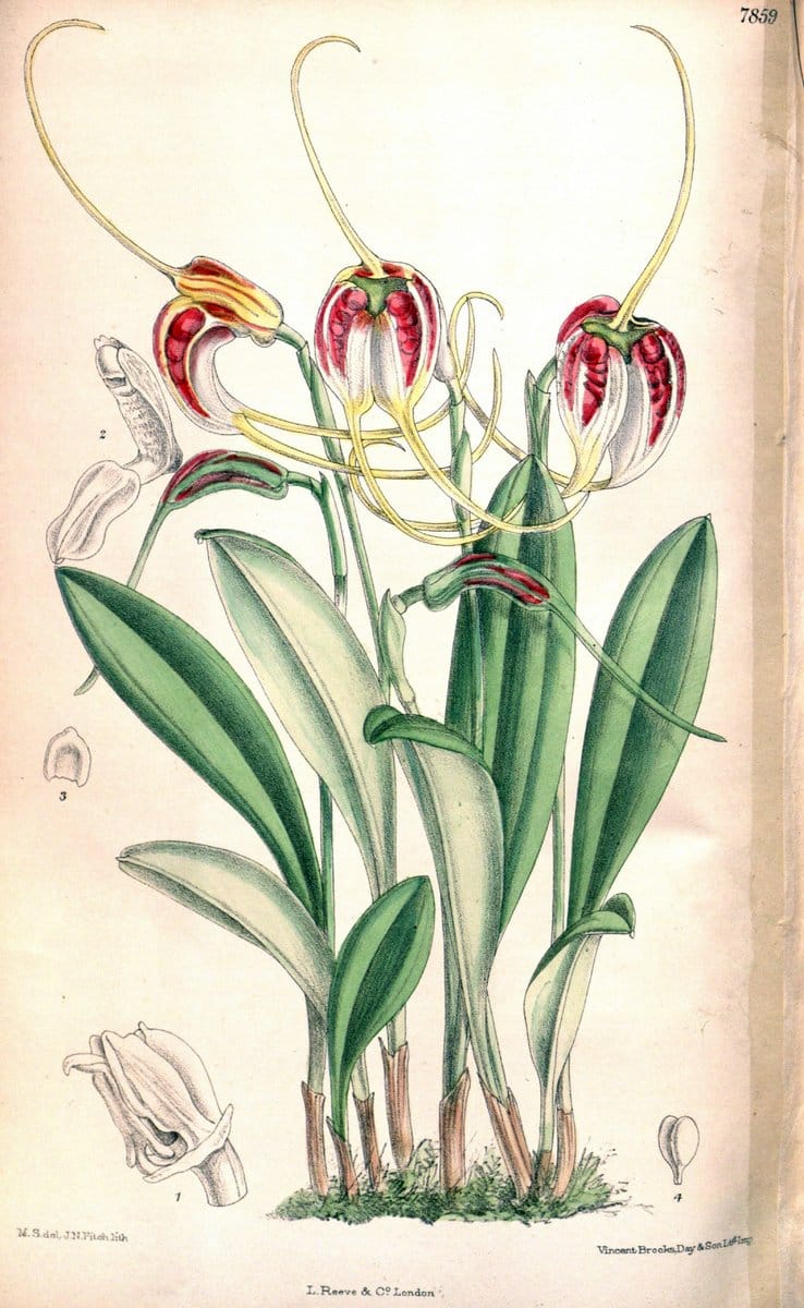 Curtis's botanical magazine. London ;New York [etc.] :Academic Press [etc.].|Botany Periodicals "Pictorial works" "Missouri Botanical Garden, Peter H. Raven Library" |artist:name=Matilda Smith | artist:viaf=48272868 | geo:country=Costa Rica | taxonomy:binomial=Masdevallia schroederiana | geo:country=Peru