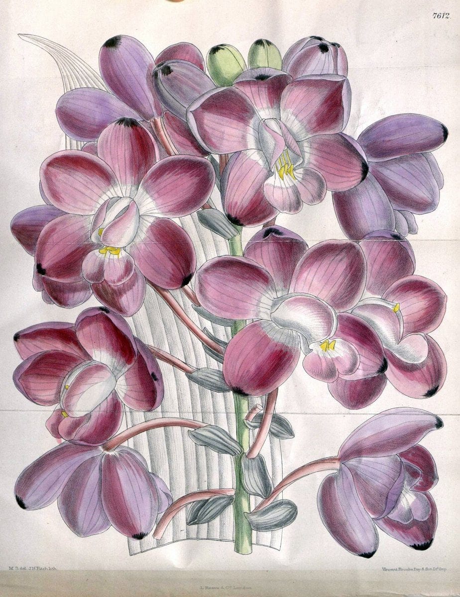 Curtis's botanical magazine. London ; New York [etc.] :Academic Press [etc.].|"Botanical illustration" Botany Periodicals "Pictorial works" "Plants, Ornamental" "Missouri Botanical Garden, Peter H. Raven Library" |artist:name=Matilda Smith | artist:viaf=48272868 | taxonomy:binomial=Eulophiella peetersiana | taxonomy:binomial=Eulophiella roempleriana | geo:country=Madagascar