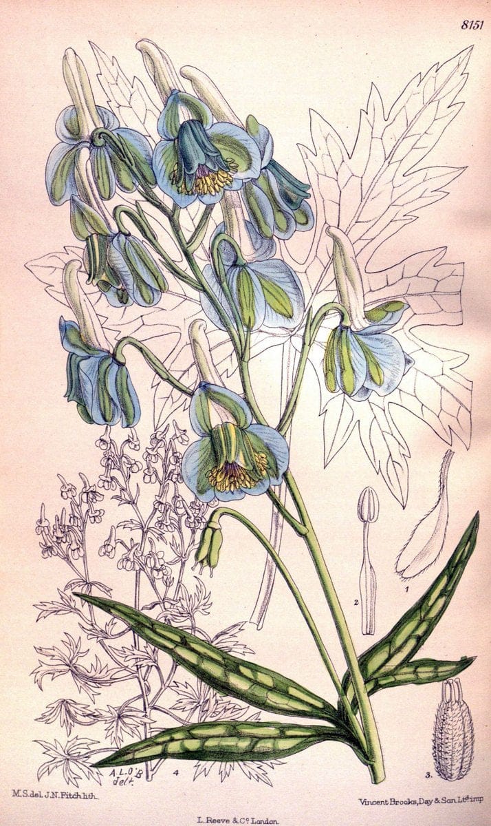 Curtis's botanical magazine. London ;New York [etc.] :Academic Press [etc.].|Botany Periodicals "Pictorial works" "Missouri Botanical Garden, Peter H. Raven Library" |artist:name=Matilda Smith | artist:viaf=48272868 | taxonomy:binomial=Delphinium macrocentron | geo:country=Uganda