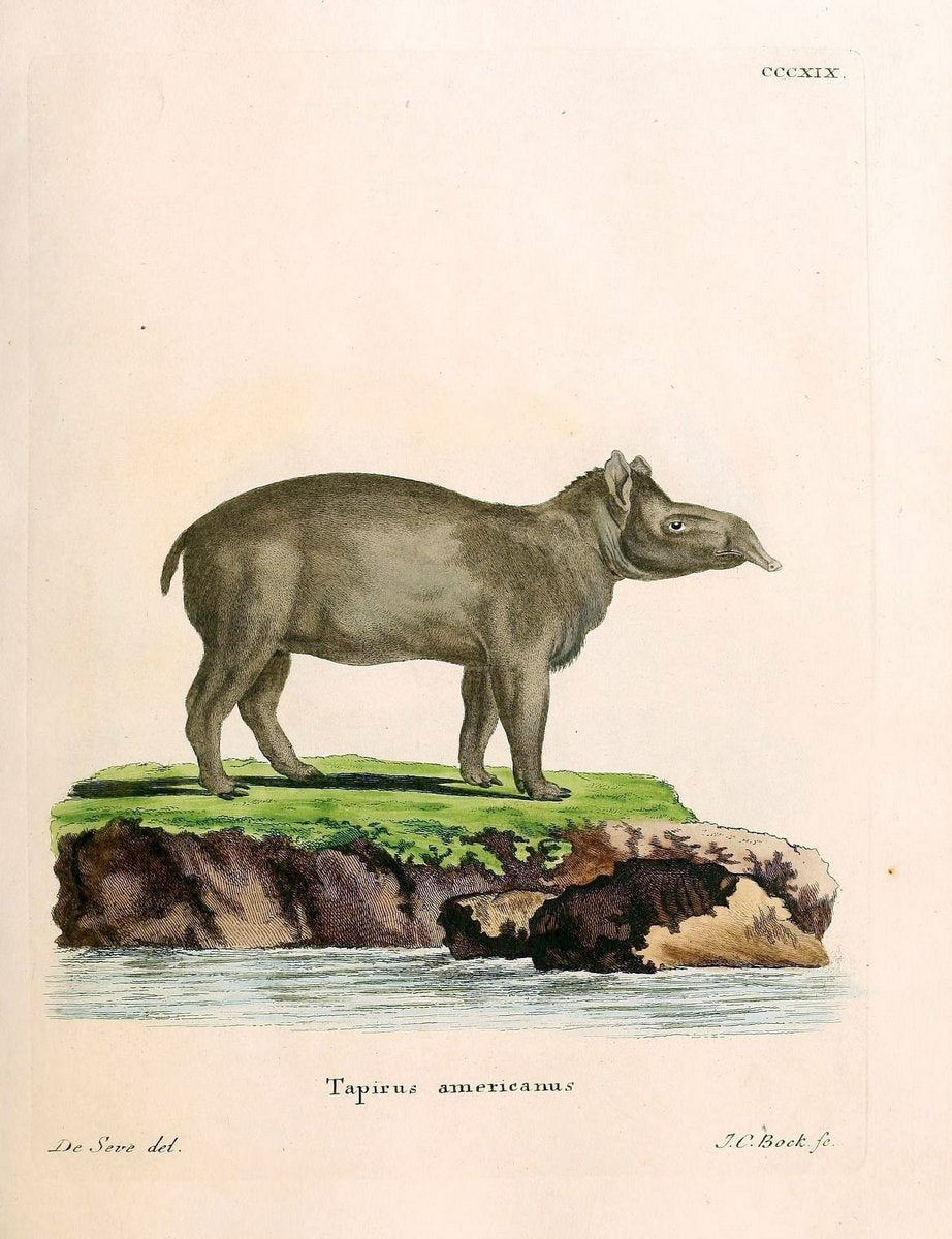 Die Säugthiere in Abbildungen nach der Natur /.Erlangen :Expedition des Schreber'schen säugthier- und des Esper'schen Schmetterlingswerkes [etc.,1774]-1846. |Mammals "Pictorial works" "Harvard University, MCZ, Ernst Mayr Library" |taxonomy:binomial=Tapirus americanus |