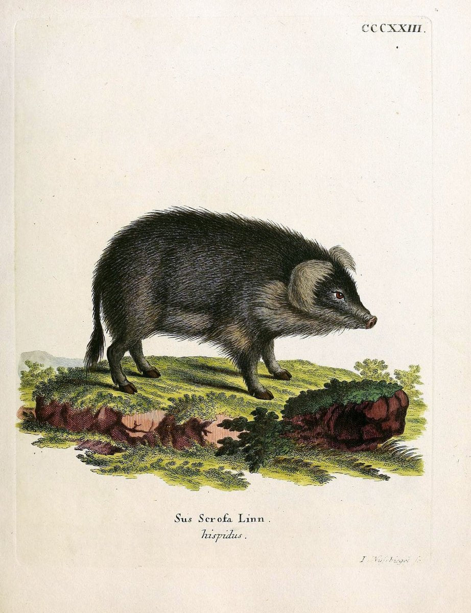 Die Säugthiere in Abbildungen nach der Natur /.Erlangen :Expedition des Schreber'schen säugthier- und des Esper'schen Schmetterlingswerkes [etc.,1774]-1846. |Mammals "Pictorial works" "Harvard University, MCZ, Ernst Mayr Library" |taxonomy:binomial=Sus scrofa | hispidus