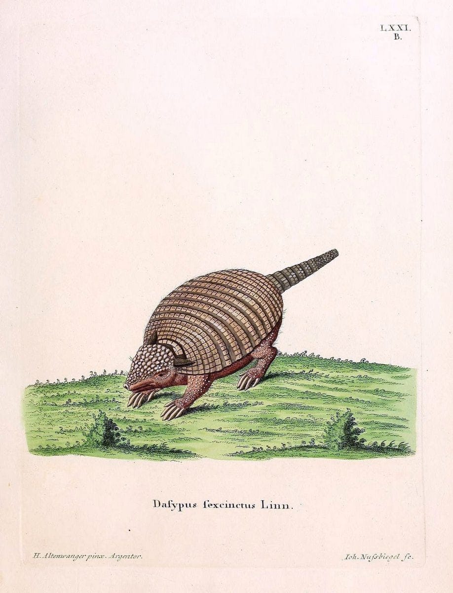 Die Säugthiere in Abbildungen nach der Natur /.Erlangen :Expedition des Schreber'schen säugthier- und des Esper'schen Schmetterlingswerkes [etc.,1774]-1846. |Mammals "Pictorial works" "Harvard University, MCZ, Ernst Mayr Library" |Armadillo