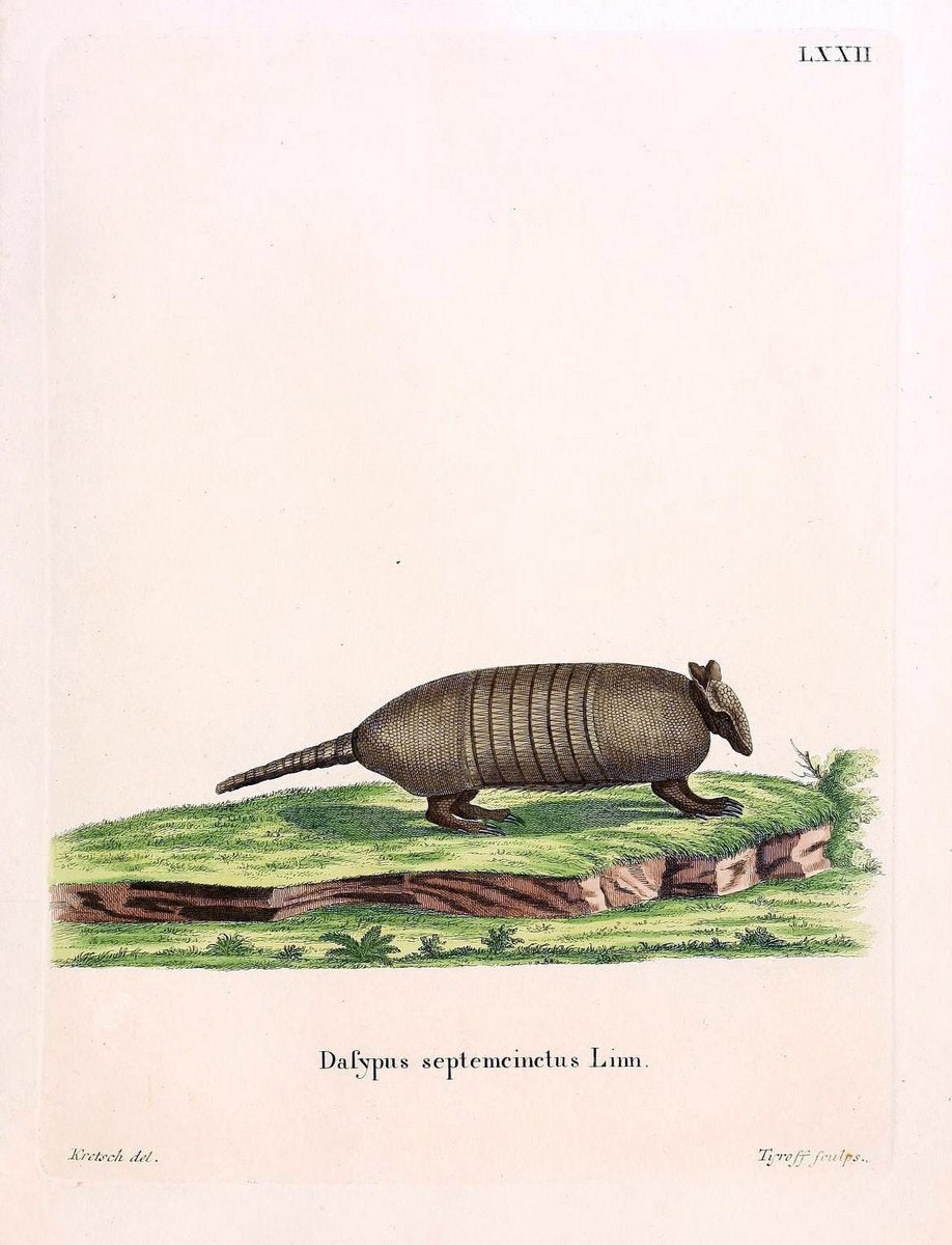 Die Säugthiere in Abbildungen nach der Natur /.Erlangen :Expedition des Schreber'schen säugthier- und des Esper'schen Schmetterlingswerkes [etc.,1774]-1846. |Mammals "Pictorial works" "Harvard University, MCZ, Ernst Mayr Library" |armadillo