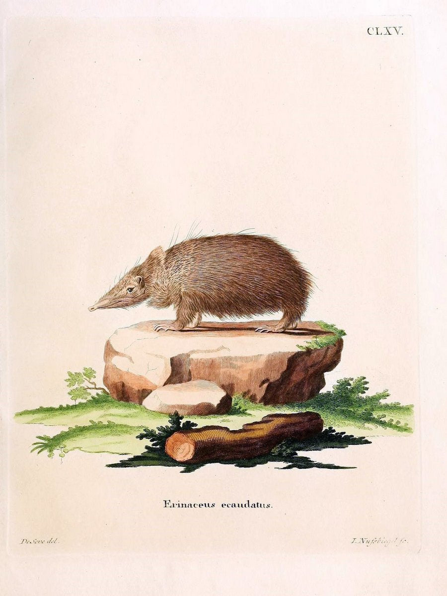 Die Säugthiere in Abbildungen nach der Natur /.Erlangen :Expedition des Schreber'schen säugthier- und des Esper'schen Schmetterlingswerkes [etc.,1774]-1846. |Mammals "Pictorial works" "Harvard University, MCZ, Ernst Mayr Library" |taxonomy:binomial=Erinaceus ecaudatus | artist:name=Jacques de Sève |