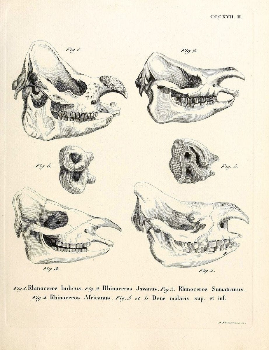 Die Säugthiere in Abbildungen nach der Natur /.Erlangen :Expedition des Schreber'schen säugthier- und des Esper'schen Schmetterlingswerkes [etc.,1774]-1846. |Mammals "Pictorial works" "Harvard University, MCZ, Ernst Mayr Library" |taxonomy:binomial=Rhinoceros indicus | taxonomy:binomial=Rhinoceros javanus | taxonomy:binomial=Rhinoceros sumatranus | taxonomy:binomial=Rhinoceros africanus |