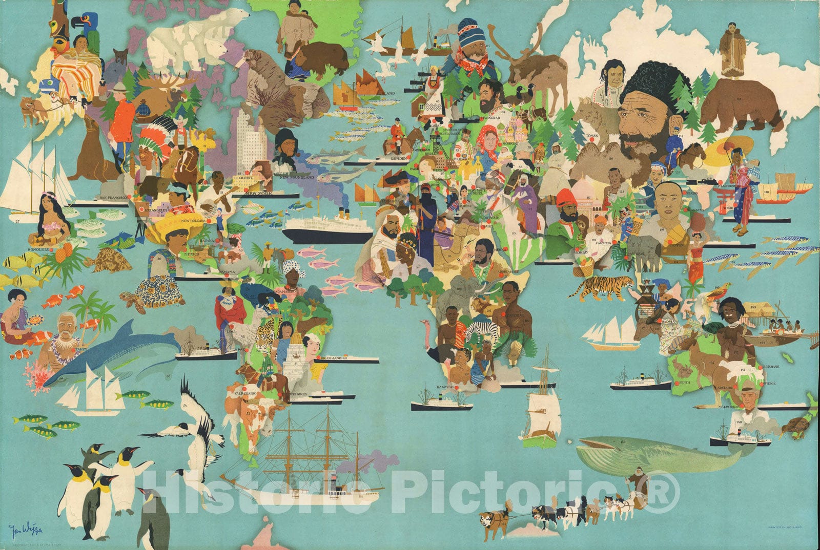 Historic Map : Ethographic and Wildlife Pictorial The World, Wijga, 1950, Vintage Wall Art