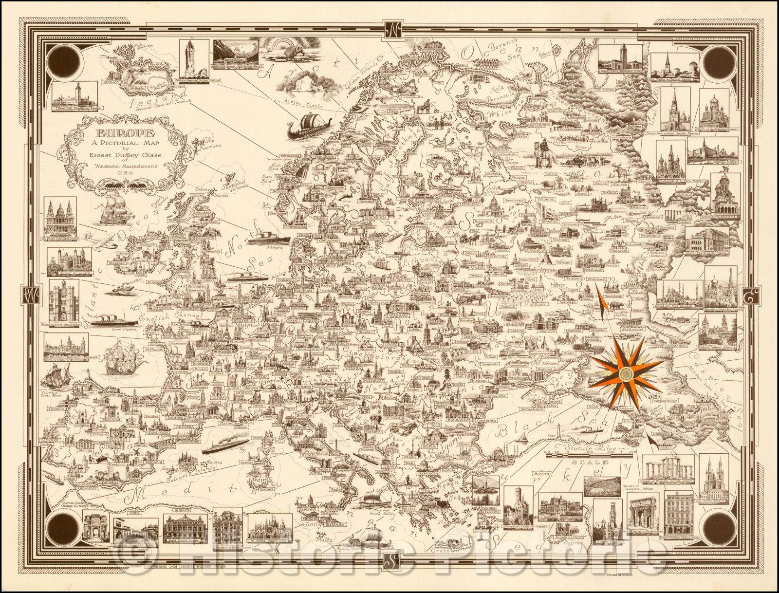 Historic Map - Europe A Pictorial Map, 1938, Ernest Dudley Chase v1