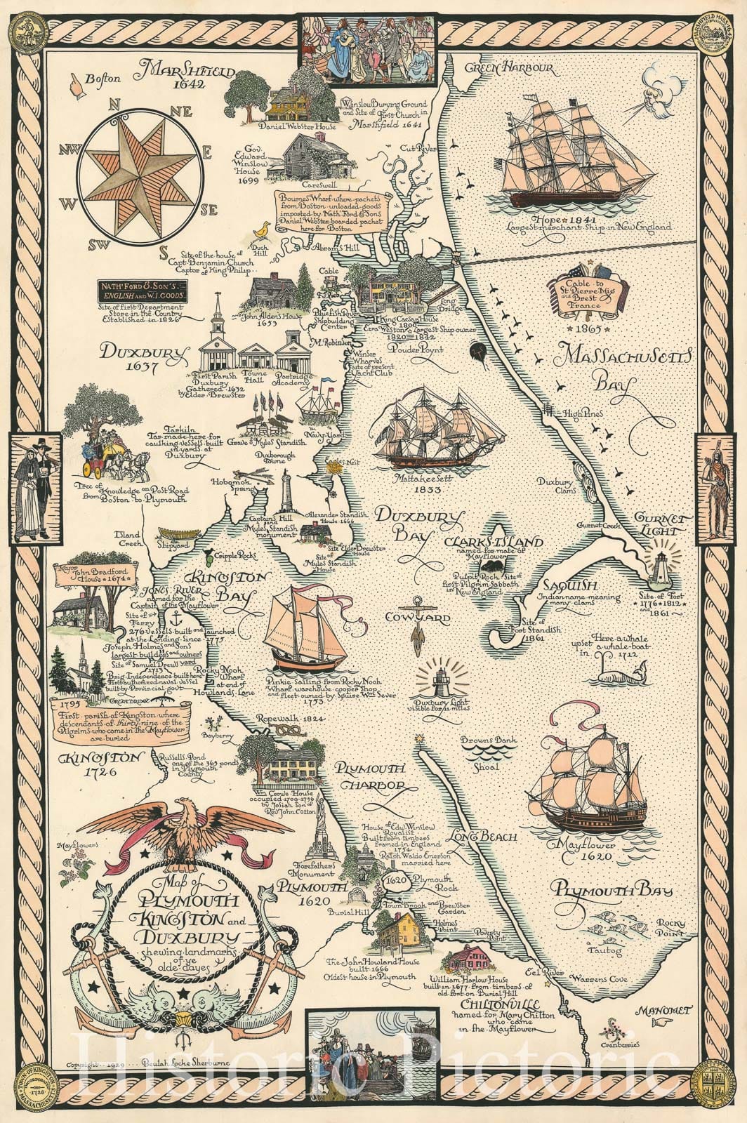 Historic Map : O'Toole Pictorial Map of Cape Ann, Massachusetts, 1948, Vintage Wall Art