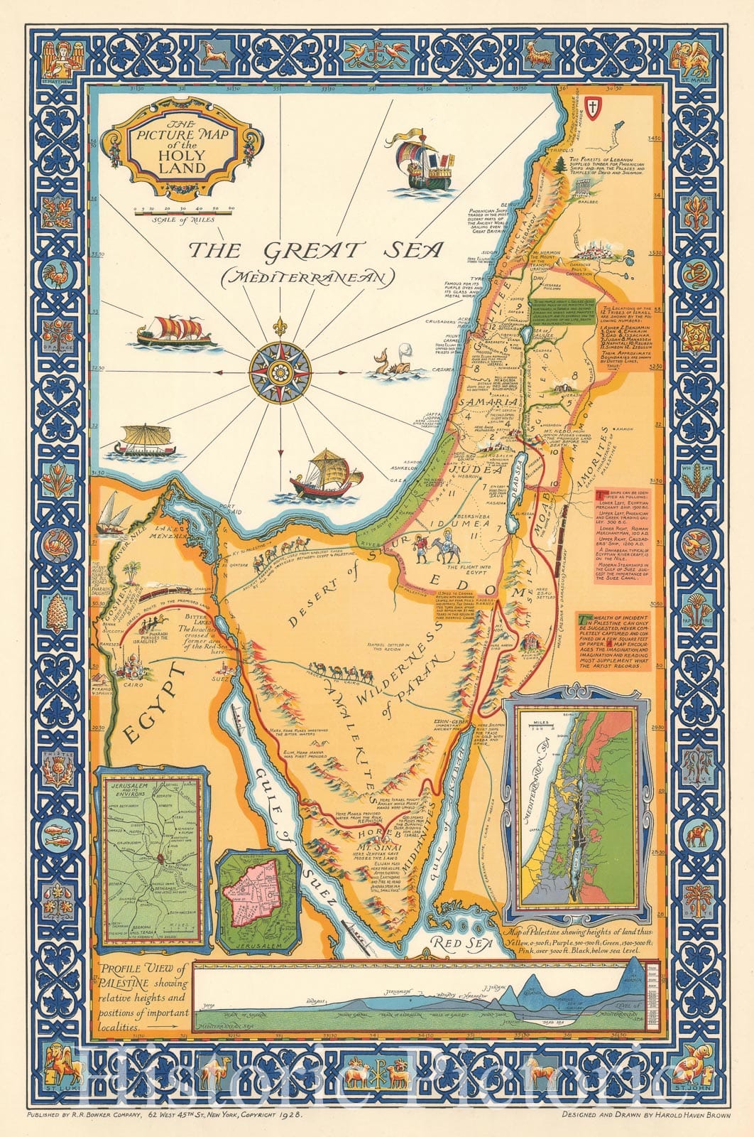 Historic Map : Pictorial Map of The Holy Land / Israel / Palestine w/ Sinai, Brown, 1928, Vintage Wall Art
