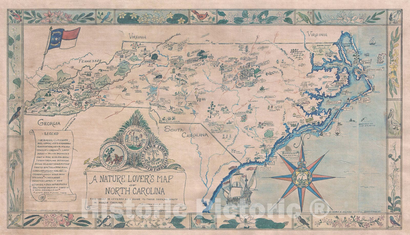 Historic Map : Pictorial Map of Nature Lover's Pictorial Map of North Carolina, 1966, Vintage Wall Art