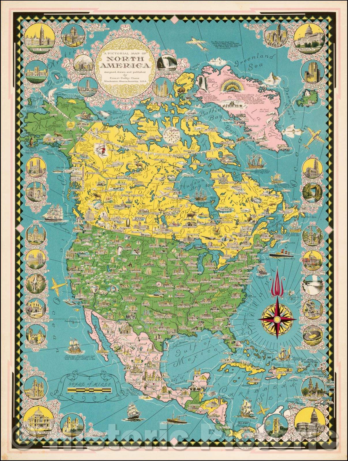 Historic Map - A Pictorial Map of North America designed, 1945, Ernest Dudley Chase v1