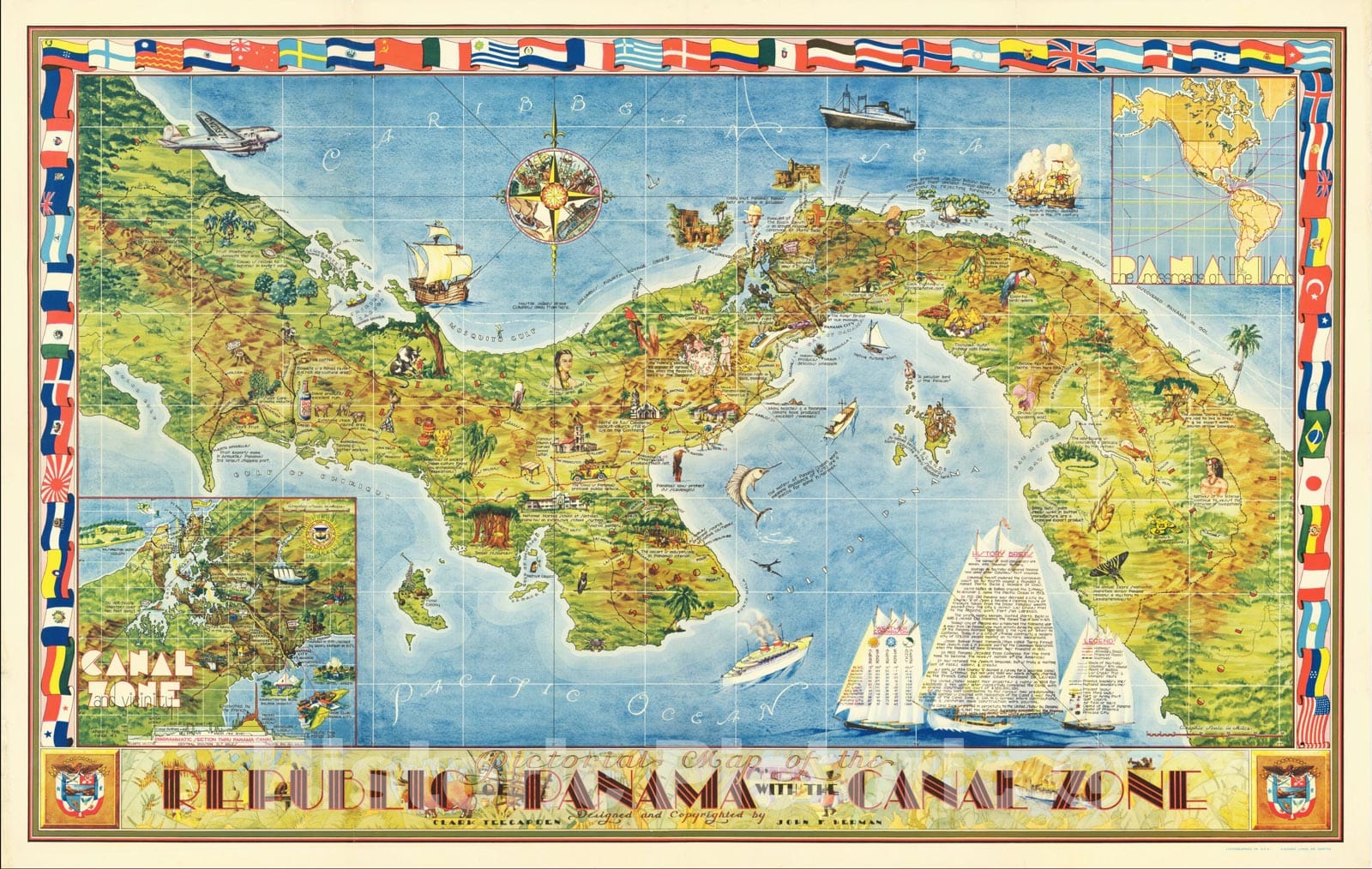 Historic Map : Pictorial Map of the Republic of Panama with the Canal Zone, 1940, Clark Teegarden, Vintage Wall Art