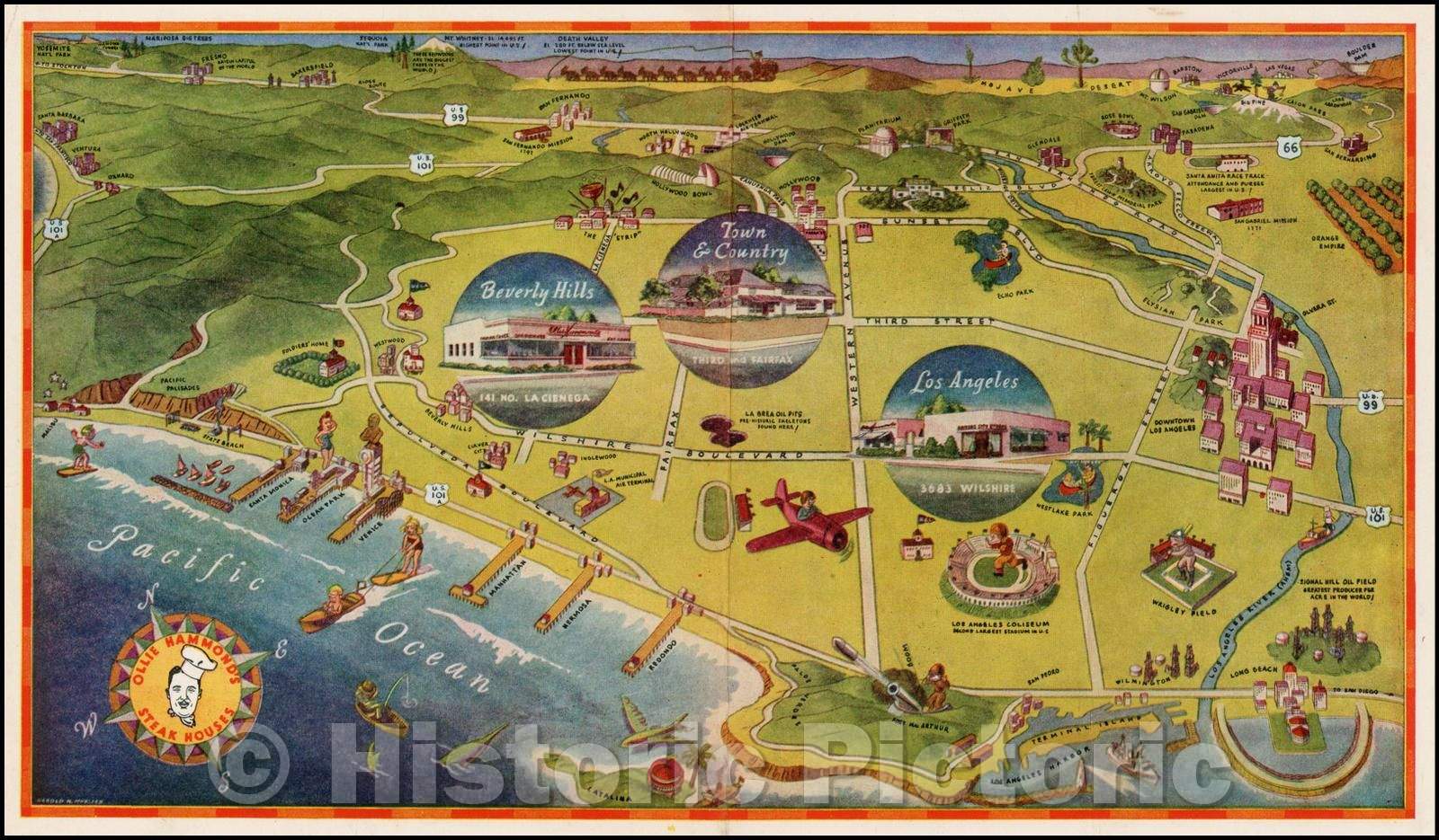 • .Historic Map - Pictorial Map of Southern California, 1947, Harold Mueller - Vintage Wall Art