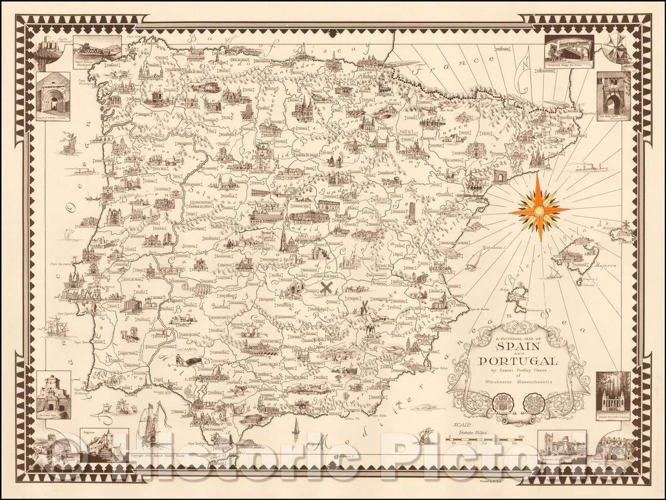 A Pictorial Map of Spain & Portugal , 1935, Ernest Dudley Chase