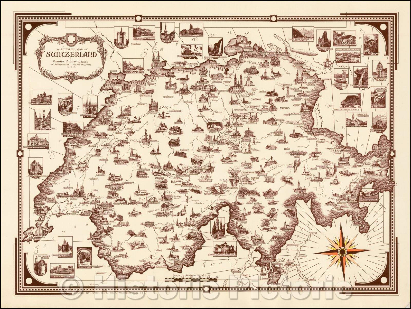 Historic Map - A Pictorial Map of Switzerland, 1936, Ernest Dudley Chase - Vintage Wall Art