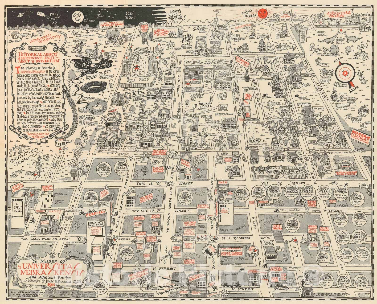 Pictorial Map of The University of Nebraska, Pickering Comical, 1931