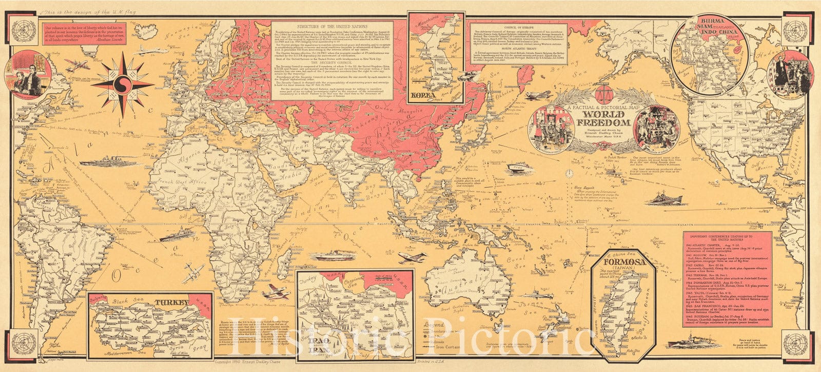 Historical Map, 1951 A pictorial Stamp map of Navigation and Exploration, Vintage Wall Art