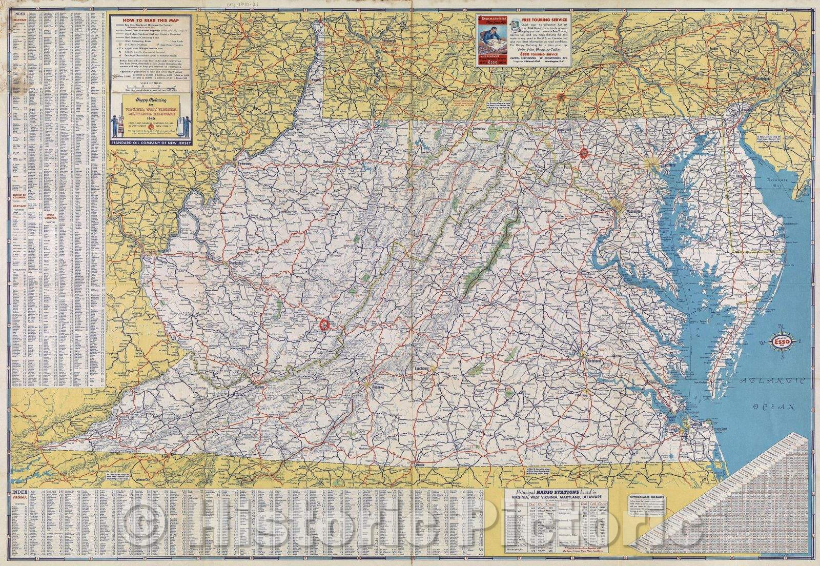Historic Map : Pictorial Guide to Happy Mortoring in Maryland, Delaware, Virginia, and West Viriginia, 1940 , Vintage Wall Art
