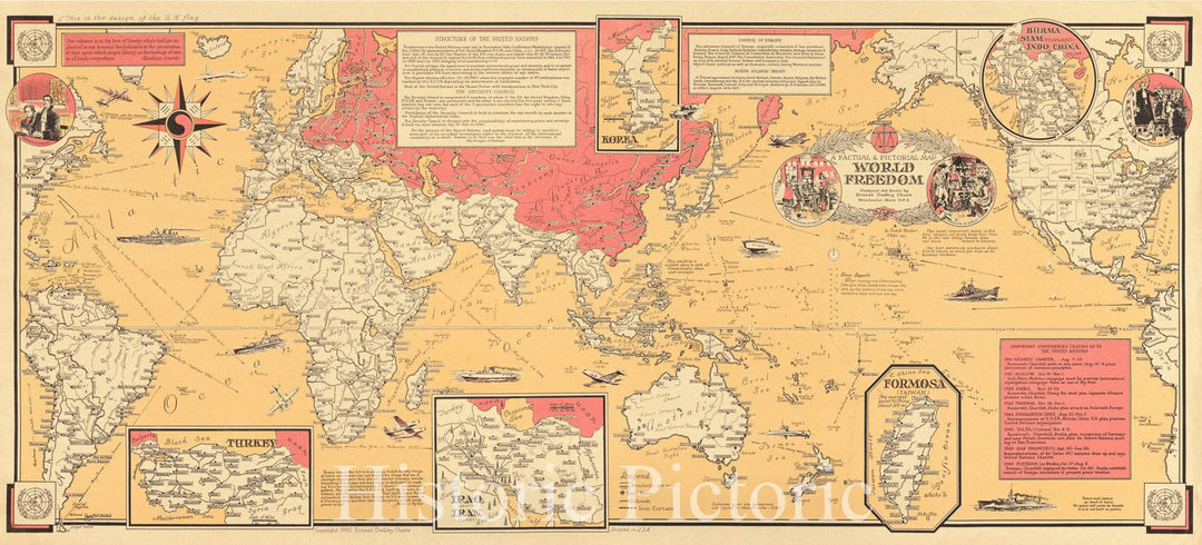 Historical Map, 1950 World Freedom : a factual & pictorial Historical Map, Vintage Wall Art